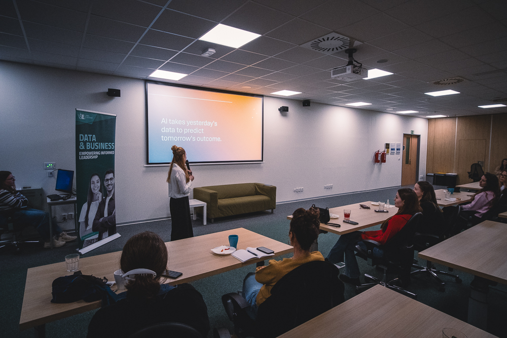 ●      Tereza Ondroušková (AI Transformation Officer, Raiffeisenbank) sdílela zkušenosti s transformací bankovního sektoru a okrajově se zmínila také o tom, jak jí v rozvoji pomohl náš MBA program Data & Analytics for Business Management.