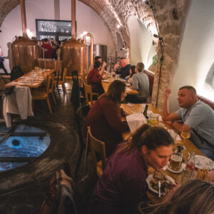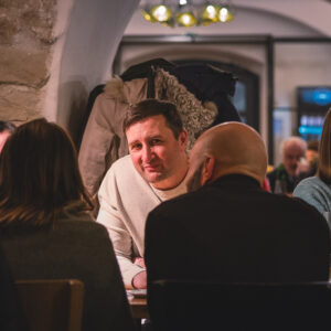 V podvečer jsme se sešli v oblíbeném pivovaru eMBe. Večer zahájila networkingová hra „human bingo“, která úspěšně prolomila ledy. Dozvěděli jsme se, kdo uběhl maraton, kdo je největší čtenář, i kdo strávil kus života v jiné kultuře. V průběhu celého večera jsme si užívali výborný raut a hlavně neformální setkání napříč obory i ročníky. Tahle části výjezdu totiž slouží i jako společný večer současných účastníků a absolventů z našeho MBA Alumni klubu.